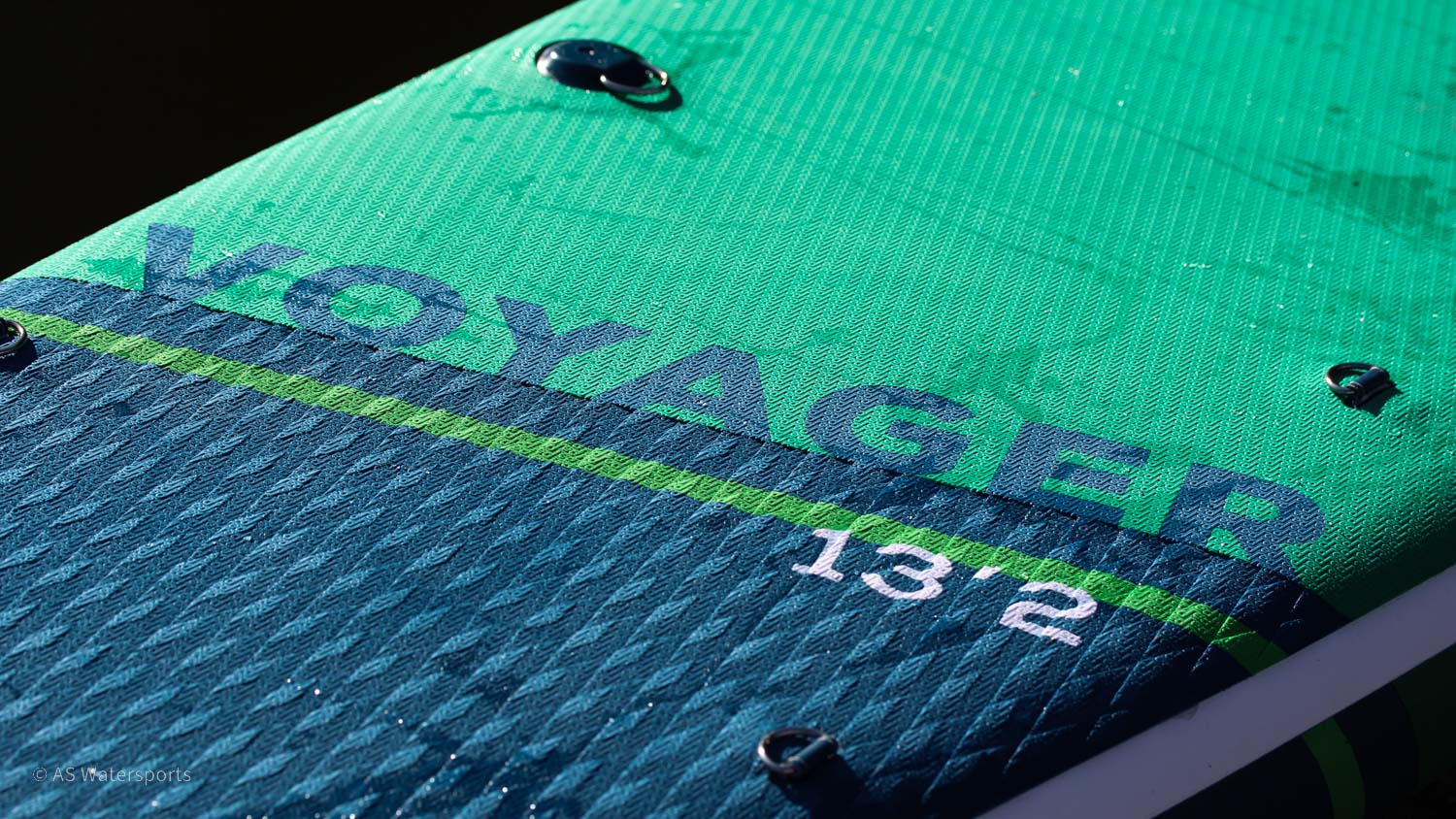 The 13'2 length allows this Voyager to gain speed quickly, while the 30" width lets the board glide over the water without losing much in the way of stability. The pointed nose cuts through the chop and the rear gives space for gear.