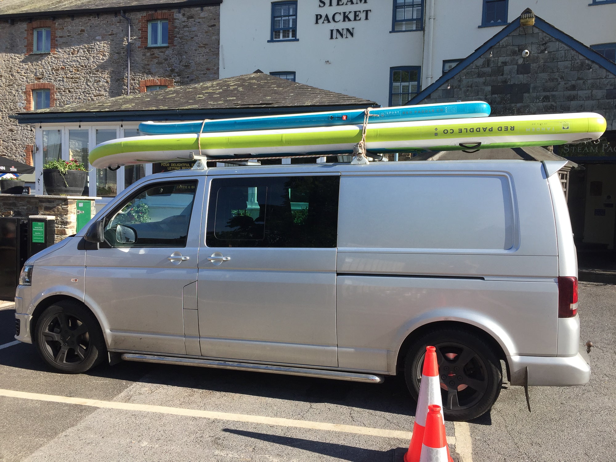 The Red Paddle Tandem is also quick once you get it up to speed. I mostly paddled it solo but tried it with two adults and it really shifts. It’s capable of, and has more than enough space to take three adults! So, it’s great for touring and trips. Anchored off the beach it would make an awesome base for your kids and their friends to play on! It’s stability means it’s also a great tool for introducing people to paddle boarding. Add in the fact that it’s easy to paddle on your own makes it really is a very versatile board, and at the end of the season you can deflate it and store in the garage! It’s also light enough for one person to carry, and multiple handles makes it easy to transport even when loaded. Throwing it on the roof of the van is easy, and it’s more than stiff enough to leave it on there for a decent journey.