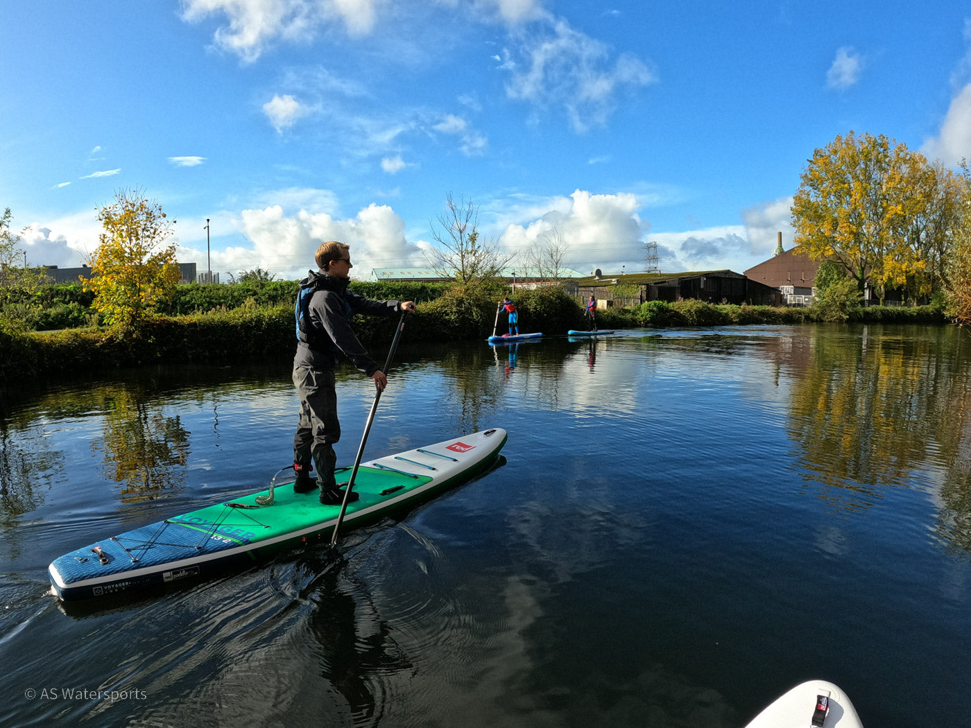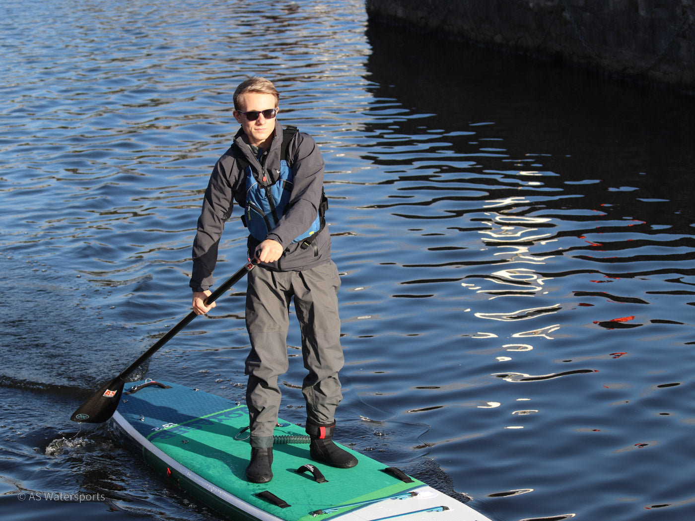 A drysuit works by sealing your body off from the water, using stretchy material on the neck and wrists with built in socks. This stops any cold water from reaching your skin, and allows thermal layers underneath to act as if they are not under water. Once you find the combination that works for you, it can be a quick and simple procedure to get kitted up and out paddleboarding. When you have finished your trip, whip the dry suit off and you are still dry, ready for the drive home.