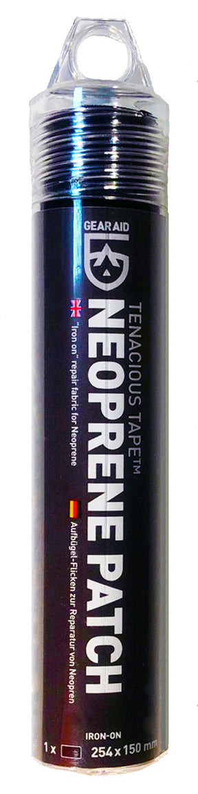 Iron on Tenacious Tape Repair Fabric for Neoprene and many other fabrics, measuring 254 X 150 mms. Provides a strong, flexible and permanent repair to damaged neoprene or similar fabrics. Applies in seconds with a household iron, abrasion resistant with Barritex Lining.
