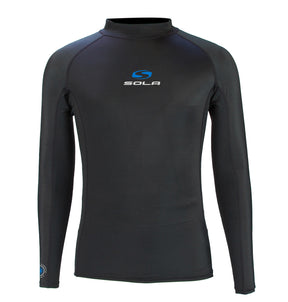 80z lycra. 50 UV sun protection. Flatlock construction. Elasticized waistband. High collar.